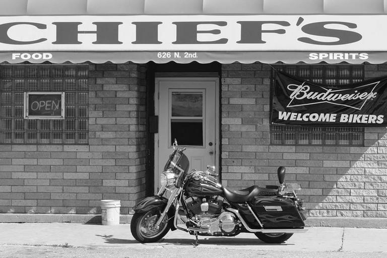 Keywords: motorcycle ride bike lifestyle freedom motorbike powerful chrome life adventure road transport vehicle welcome sign bistro bar restaurant black and white