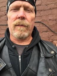 | Keywords: motorcycle rider leather coat biker caucasian male one person red brick black clothes leather bandanna skulls looking look bad to the bone biker jacket black leather motorcycle jacket macho middle age adult man mature guy goatee beard mustache |