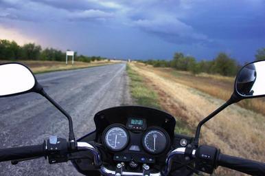 Keywords: motorcycle road dark sky steering wheel mirror horizon