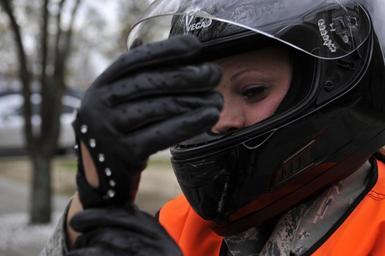 Keywords: motorcyclist helmet gloves biker rider jacket female