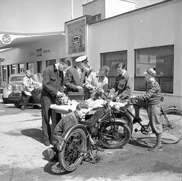 | Keywords: motorsykkel ungdom rogaland sykkel riksarkivet motorcycle scooter bicycle monochrome blackandwhite vehicle bike black and white Beskrivelse: Motorkurs for ungdom arrangert av Rogaland distrikt av Motorførernes avholdsforbund, mai 1955. Fotograf: Billedbladet NÅ Arkivreferanse: RIKSARKIVET- PA797_811. Tekst: "MA i Stavanger går til preventiv kamp mot eksosbøllene. Glassmester Markus Larsen er kursets sjefsinstruktør. Her gir han gode råd, mens guttene plukker motorer fra hverandre. Ved bordet fra venstre: Jan Abrahamsen, Larsen, Tor Jan Nilsson og Per Helle. I forgrunnen pusser Bjarne Fjermestad rammen på en motorløs motorsykkel, men Kjell Vik (t.h.) er for ung til å være med og bare må se på de store gutta. I bakgrunnen Per Thorslands kjekke lærescooter." Reportasje Finn Norstrøm - Ragge Strand. Description: Motor course for youngsters organized by the Rogaland district of The Norwegian Abstaining Motorists Association (MA), May 1955. Archival reference: PA797_811. Text: "MA in Stavanger fights a preventive battle against the traffic bullies. Master glazier Markus Larsen is the main instructor at the course. Here he gives some good advice, while the boys dismantle engines. At the table from the left: Jan Abrahamsen, Larsen, Tor Jan Nilsson and Per Helle. In the foreground Bjarne Fjermestad polishes the frame of a motorbike with no engine, but Kjell Vik (to the right) is too young to participate and can only watch the big boys. In the background is Per Thorsland’s teaching scooter." Report Finn Norstrøm - Ragge Strand. Beskrivelse: Motorkurs for ungdom arrangert av Rogaland distrikt av Motorførernes avholdsforbund, mai 1955. Fotograf: Billedbladet NÅ Arkivreferanse: RIKSARKIVET- PA797_811. Tekst: "MA i Stavanger går til preventiv kamp mot eksosbøllene. Glassmester Markus Larsen er kursets sjefsinstruktør. Her gir han gode råd, mens guttene plukker motorer fra hverandre. Ved bordet fra venstre: Jan Abrahamsen, Larsen, Tor Jan Nilsson og Per Helle. I forgrunnen pusser Bjarne Fjermestad rammen på en motorløs motorsykkel, men Kjell Vik (t.h.) er for ung til å være med og bare må se på de store gutta. I bakgrunnen Per Thorslands kjekke lærescooter." Reportasje Finn Norstrøm - Ragge Strand. Description: Motor course for youngsters organized by the Rogaland district of The Norwegian Abstaining Motorists Association (MA), May 1955. Archival reference: PA797_811. Text: "MA in Stavanger fights a preventive battle against the traffic bullies. Master glazier Markus Larsen is the main instructor at the course. Here he gives some good advice, while the boys dismantle engines. At the table from the left: Jan Abrahamsen, Larsen, Tor Jan Nilsson and Per Helle. In the foreground Bjarne Fjermestad polishes the frame of a motorbike with no engine, but Kjell Vik (to the right) is too young to participate and can only watch the big boys. In the background is Per Thorsland’s teaching scooter." Report Finn Norstrøm - Ragge Strand. |
