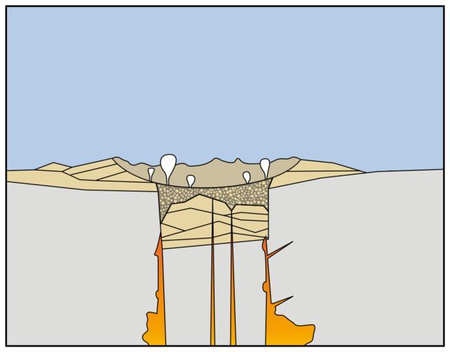 Keywords: Mount Mazama eruption timeline 3.svg Eruptions of ash and pumice The cataclysmic eruption started from a vent on the northeast side of the volcano as a towering column of ash with pyroclastic flows spreading to the northeast Caldera collapse As more magma was erupted cracks opened up around the summit which began to collapse Fountains of pumice and ash surrounded the collapsing summit and pyroclastic flows raced down all sides of the volcano </span> Steam explosions When the dust had settled the new caldera was 5 miles 8 km in diameter and 1 mile 1 6 km deep Ground water interacted with hot deposits causing explosions of steam and ash <span style color cccccc; > Today In the first few hundred years after the cataclysmic eruption renewed eruptions built Wizard Island Merriam Cone and the central platform Water filled the new caldera to form the deepest lake in the United States Figure modified from diagrams on back of 1988 USGS map Crater Lake National Park and Vicinity Oregon </span> http //pubs usgs gov/fs/2002/fs092-02/ U S GEOLOGICAL SURVEY and the NATIONAL PARK SERVICE Nachgebaut von Benedikt Seidl 06-08-2008 Image Mount_Mazama_eruption_timeline PNG SVG Benedikt Seidl Mount_Mazama_eruption_timeline PNG Mount Mazama diagrams Volcanological diagrams Diagrams of calderas |