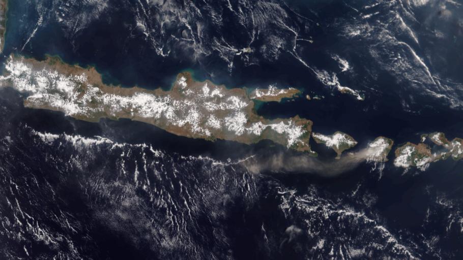 | Keywords: outdoor Mt. Rinjani, a volcano in the Indonesian island of Lombok, began intermittently erupting on October 27, 2015. In the days following, activity increased, closing airports in the region as a stream of volcanic ash and smoke moved westward along the Java coast. The volcano last erupted in 2010, but has been active for centuries. According to the Smithsonian, an eruption of Mt. Rinjani in 1257 CE was one of the largest in history. Credit: NOAA/NASA Mt. Rinjani, a volcano in the Indonesian island of Lombok, began intermittently erupting on October 27, 2015. In the days following, activity increased, closing airports in the region as a stream of volcanic ash and smoke moved westward along the Java coast. The volcano last erupted in 2010, but has been active for centuries. According to the Smithsonian, an eruption of Mt. Rinjani in 1257 CE was one of the largest in history. Credit: NOAA/NASA |