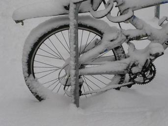 Keywords: mountain bike bike rear wheel circuit mature rim spokes snowed in snow winter