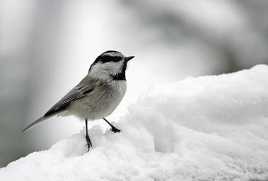 Keywords: mountain chickadee snow bird portrait wildlife nature winter perched scenic