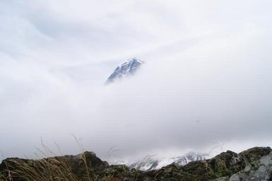 Keywords: mountain eiger switzerland rock snow fog sky clouds