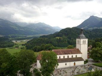 Keywords: mountain field green trees alps gruyère