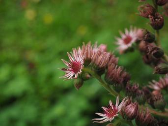 Keywords: mountain houseleek sempervivum blossom bloom pink macro plant flower pistil pollen close blossoms close up bud stone crop succulent agavengewächs incomplete green nature ground cover sempervivum montanum houseleek