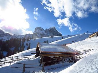 Keywords: mountain hut snow winter white aggenstein breitenberg sky clouds sunny blue ski run snowy romantic idyllic wintry winter magic mountains rock