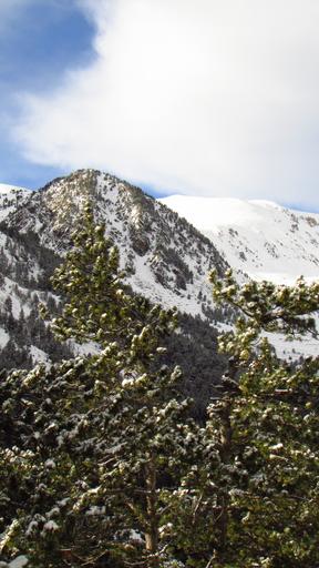 Keywords: mountain nevada top snow pyrenees pine nevado sky mountain landscape landscape nature winter snowy landscape white clouds cold ice mountain road peace snowy road path lead mountaineering peaceful