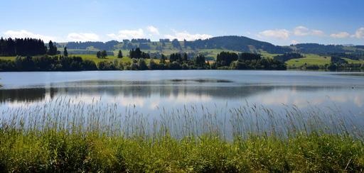 Keywords: mountain panorama mountains bergsee allgäu rottachsee reservoir lakeside reed mirroring mood lake nature water bank landscape