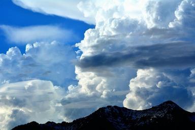 Keywords: mountain peaks sky clouds cumulus clouds nature weather weather mood