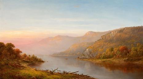 | Keywords: Mountain River Scene Autumn of the Hudson-Charles Wilson Knapp-1870.jpg Artwork 1870 oil on canvas 28 x 50 inches 71 1 x 127 cm object history exhibition history credit line accession number http //fineart ha com Heritage Auctions PD-old-100 Paintings of the Hudson River Charles Wilson Knapp Autumn landscape paintings Oil paintings of landscapes Images from Heritage Auctions 1870 oil on canvas paintings in the United States 1870s landscape paintings | ||||