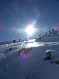 Keywords: mountain snow sun people trekking hiking tramping mountaineering winter group landscape rocks cold hill slope summit tranquil exercise season sport