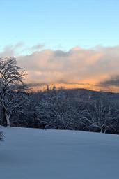 Keywords: mountain snow winter trees sunset landscape snowshoe