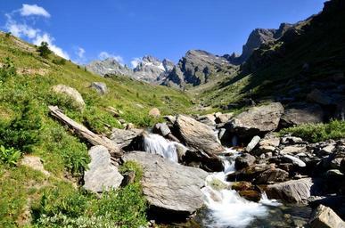 Keywords: mountain torrent water alps nature cascade rocks hautes alpes current water courses summer landscape