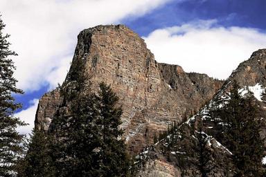 Keywords: mountain trees canada landscape nature scenic green scenery blue peak cloud range tranquil wilderness outdoor rock cliff sky erosion weathering