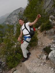 Keywords: mountaineer hiking fun managed at the finish joy happy wanderer man person climbing equipment senter dei bech via ferrata cima capi cima capi garda italy