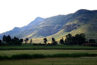 Keywords: mountains changing hues sunlight trees green grass meadow sky field