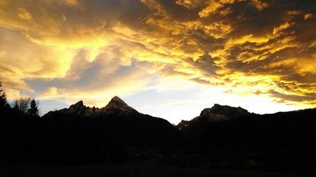 Keywords: mountains clouds cloud formation beauty drama nature sky mood alpine landscape view götterdämmerung orange silhouette sunset evening atmosphere shadow evening sky abendstimmung