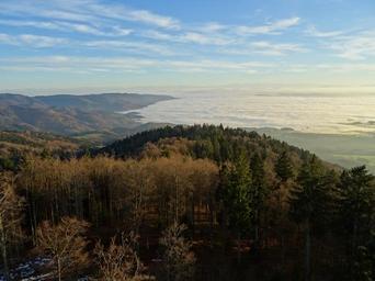 Keywords: mountains clouds sky alpine blue landscape forest mixed forest black forest spruce nature switzerland summit outlook mountain panorama aerial view
