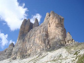 Keywords: mountains dolomites sky rock landscape stones summer blue hiking majestic 3 three battlements