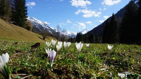 Keywords: mountains flowers spring alpine meadow nature landscape alpine flower sunny mountain flowers sky plant