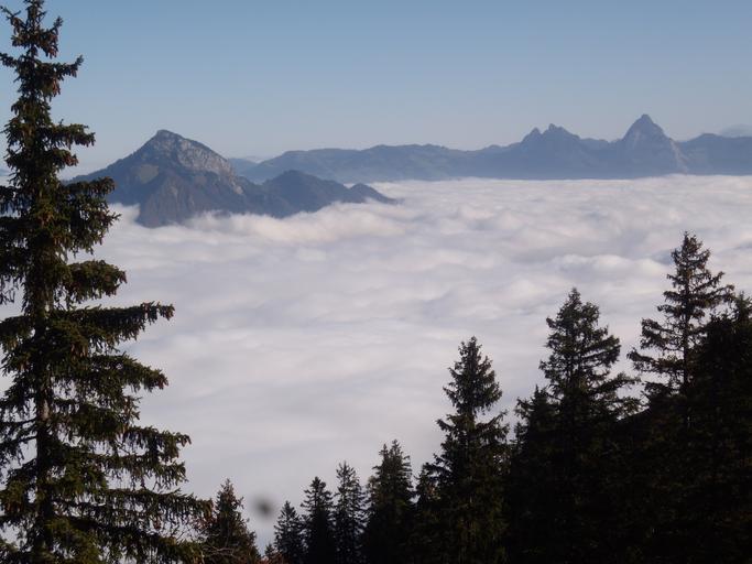 Keywords: mountains fog tree mood sea of fog klewenalp beckenried switzerland lake lucerne region great myths small myths myths pyramid rock