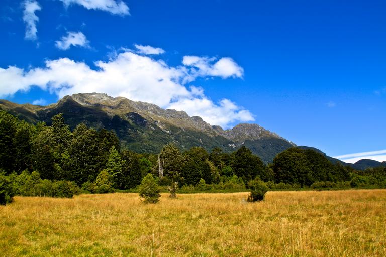 Keywords: mountains grass nature sky blue clouds trees landscape wallpaper
