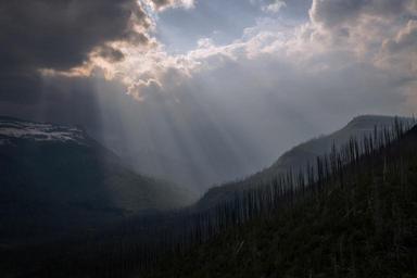 Keywords: mountains landscape clouds light sun sunlight crepuscular rays outdoors nature peaks mist fog sky shine valley scenic
