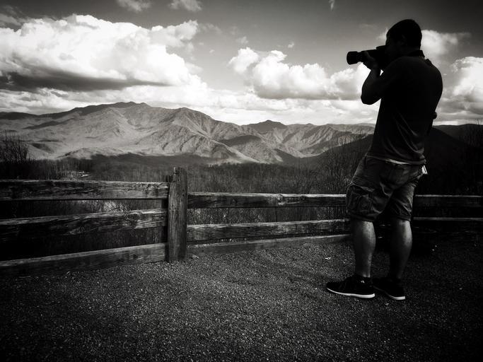 Keywords: mountains landscape photographer camera nature outdoors people guy man sky clouds black and white