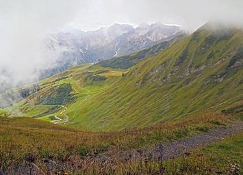Keywords: mountains mountain landscape fog alpine allgäu fellhorn oberstdorf gloomy sleet green away path mountain summit