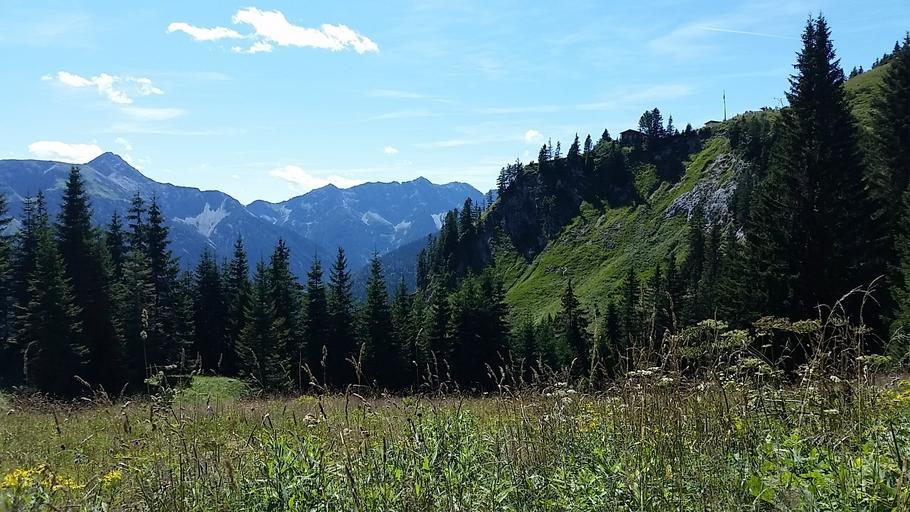 Keywords: mountains mountain landscape nature landscape idyll hiking forest hill mood clouds hike sky beautiful scenic