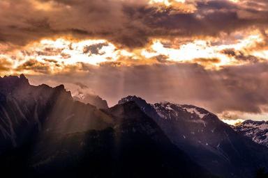 Keywords: mountains mountain peaks landscape sky clouds sunlight sunbeam lighting weather weather mood nature