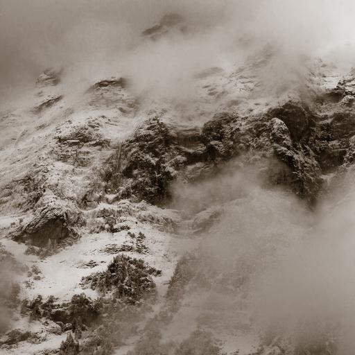 Keywords: mountains mountain switzerland alpine snow fog winter cold scene forward frost forest air clouds cloudiness cloudy dramatic weather black and white light black and white photo trees tree landscape nature