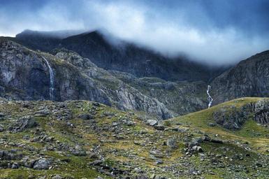 Keywords: mountains nature landscape travel sky view outdoor summer adventure green hiking rock environment mist fog tranquil climbing