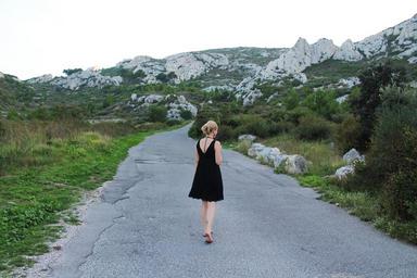 Keywords: mountains road green grass mountain road nature landscape hill country travel outdoors trip summer trail scenery adventure scenic walk walking girl woman walking away leaving journey tranquil wilderness tourism