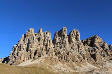 Keywords: mountains rose garden south tyrol italy alpine rock massif alps alpe di blue sky