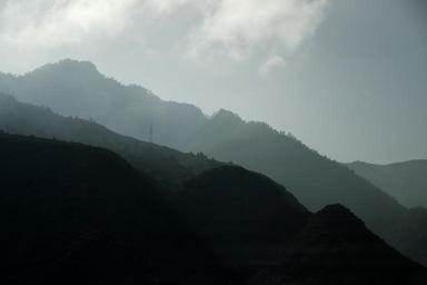 Keywords: mountains shadow light sun fog rays landscape mystical mood