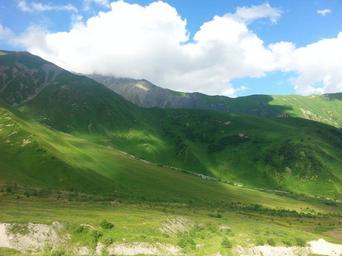 Keywords: mountains sky clouds landscape mountain rocks slopes dahl greens nature journey northern caucasus south ossetia height the caucasus