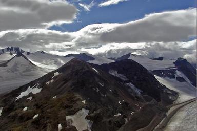 Keywords: mountains snow sky clouds snowy peak rock scenery yukon territory aerial view canada landscape