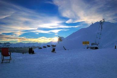 Keywords: mountains snow sun loungers sunset sky blue white sun mood