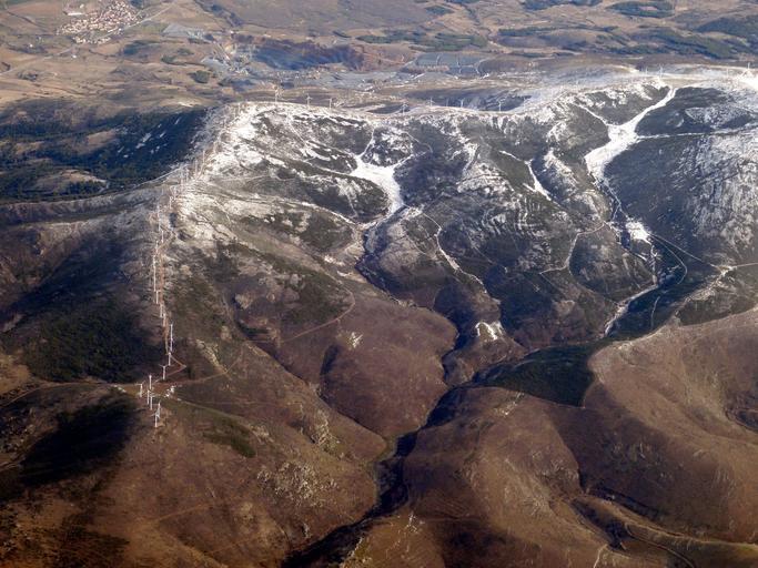 Keywords: mountains spain flight outlook view aerial view wind power wind energy wind turbine rotor blades power generation current technology electricity production environmental technology pinwheel energy