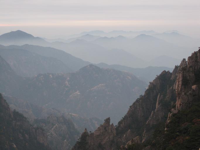 Keywords: mountains sunset clouds landscape view mountain ranges fog