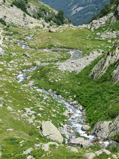 Keywords: mountains view valley idyllic beautiful hiking hike gta piedmont meadow river bach murmur flow cold water clear mountain stream italy charming vallone della barra bubble torrent