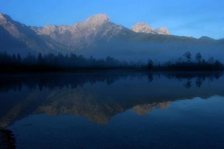Keywords: mountains water mirroring mountain and water lake landscape sky nature fog sunrise lighting austria trees mountain ranges alpine mountain peaks morning