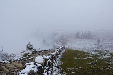 Keywords: mountains winter creux du van switzerland jura fog crap walk field land snowfall