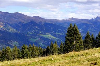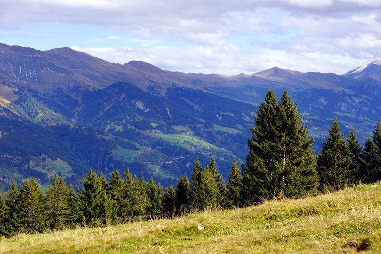 Keywords: mountians view alps highlands range meadow trees nature landscape panorama outdoor
