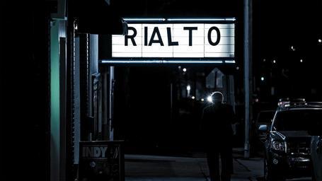 Keywords: movie theatre theater night evening entertainment sign street city dark