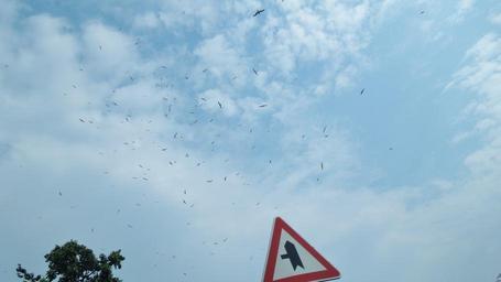 Keywords: Möwenschwarm.jpg en A flock of seagulls circling above Aquileia Udine / Friuli-Venezia Giulia de Ein Möwenschwarm kreist über Aquileia Udine/Friaul-Julisch Venetien own Kornblumenblüte 2015-06-27 Cc-zero
